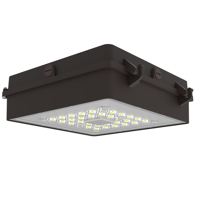 1. Surface mount LED canopy is a utility ceiling-mount fixture for general lighting applications in gas station and parking garages, designed for easy installation and maintenance.